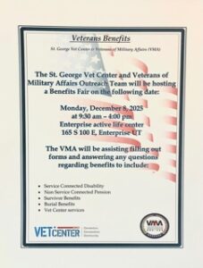 - Calling All Veterans Monday Dec 8,2025 at the Enterprise Active Life Center 9:30- 4:00 165 S 100 E Enterprise UT